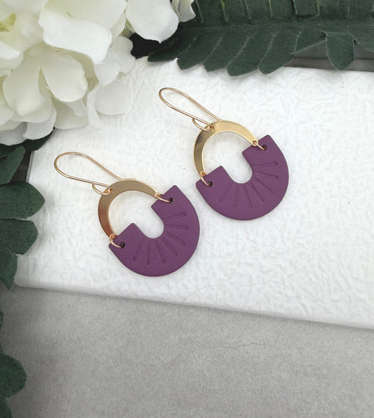 Earrings Made with Purple or Plum Polymer Clay Arches and Gold Plated Arches PCE-980
