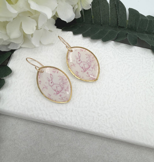 Earrings Made with Polymer Clay Pink Toille Bunnies - PCE-983