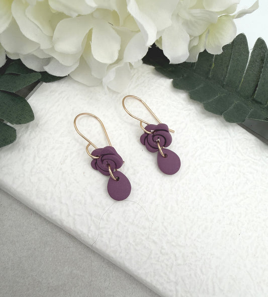 Earrings Made with Purple or Plum Polymer Clay Roses and Teardrops PCE-979