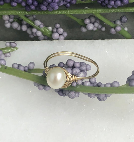 14k Gold Filled Wire Wrapped Ring with a Single Pearl GR-1